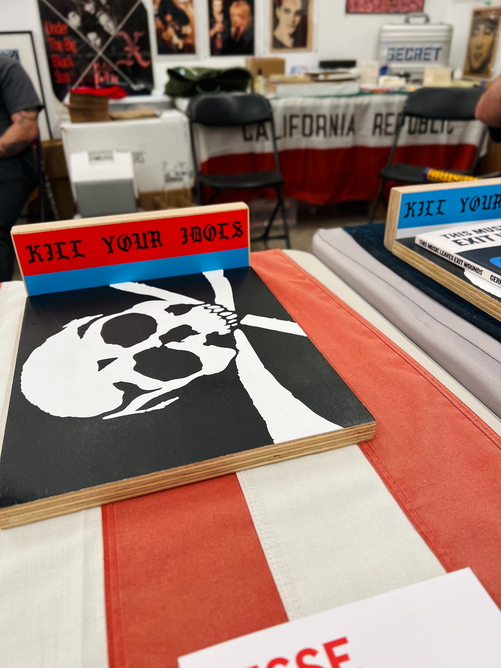 Hand Painted Sandwich Board for Kill Your Idols Publishing